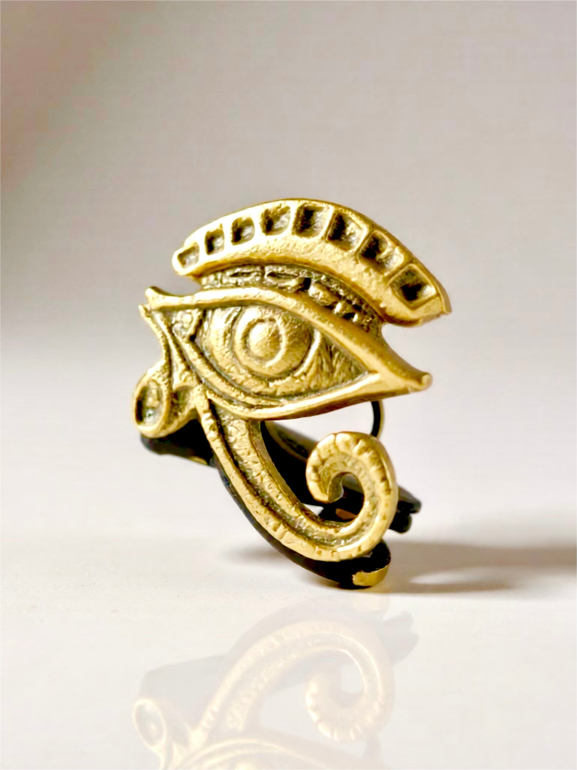 Bague ANKHARA – Œil d’Horus sculpté en laiton doré | Bijou artisanal REMBO by Aria
