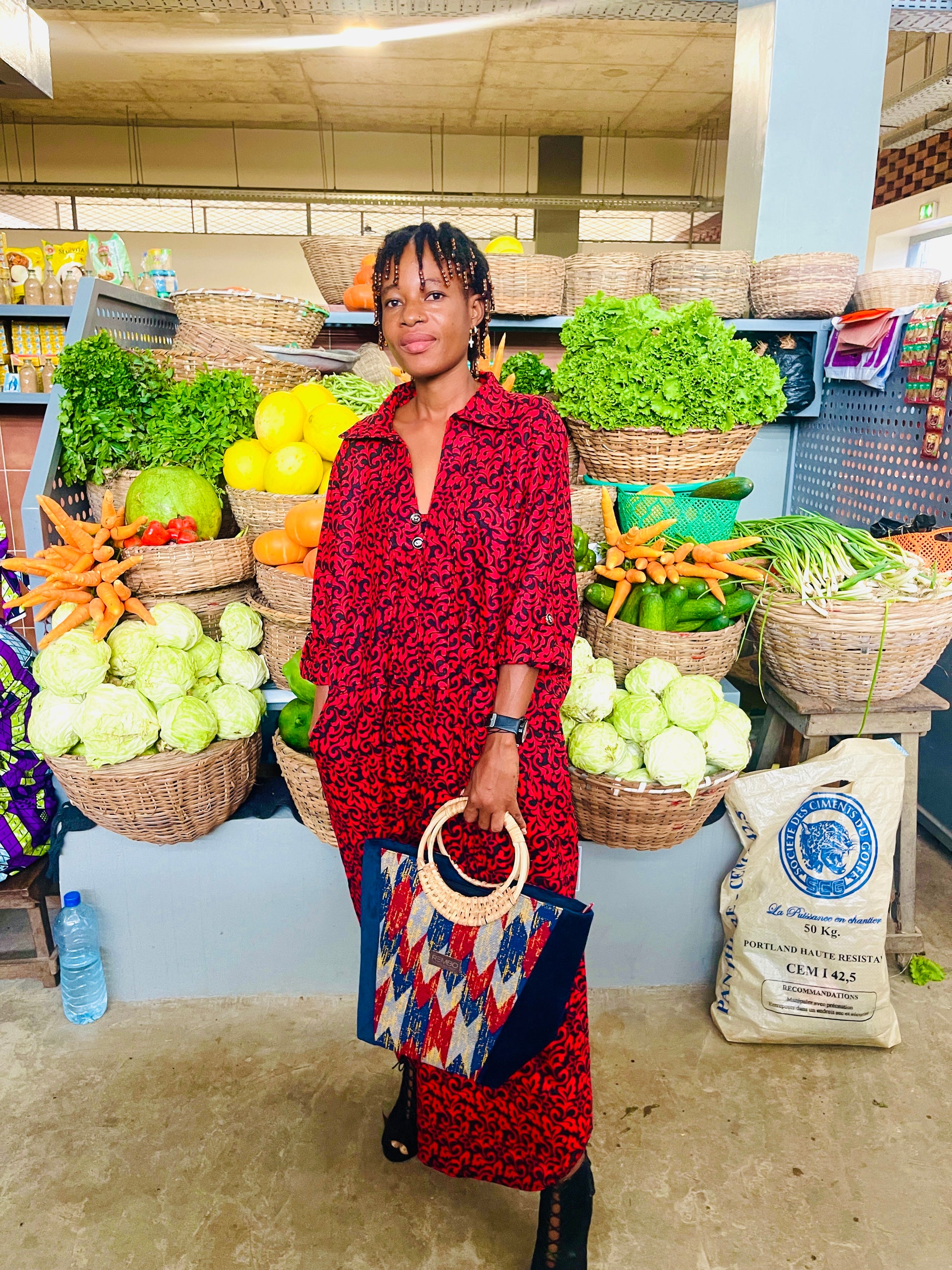 Découvrez cette robe chemise maxi en wax 100% coton, un incontournable pour un look élégant et contemporain. Avec ses imprimés modernes rouge et noir, cette robe se distingue par son style polyvalent et son confort, idéale pour toutes les occasions, que ce soit pour une sortie décontractée ou un événement plus habillé.